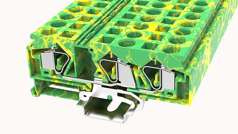 Клемма на дин-рейку, 16 кв.мм, пружинная, земля Артикул: WS16-TW-PE-01P-1C-00A(H) от производителя Degson