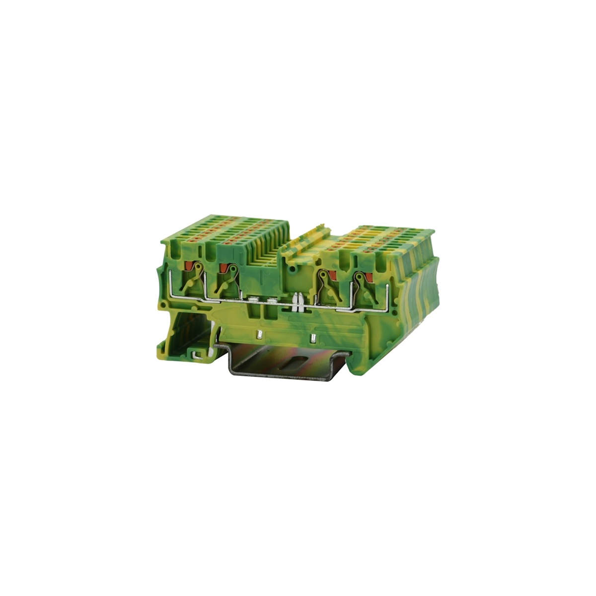 Клемма на дин-рейку, заземляющая, количество точек подсоединения: 4, 1,5 кв. мм, тип подключения: зажим Push-in, желто-зеленая.