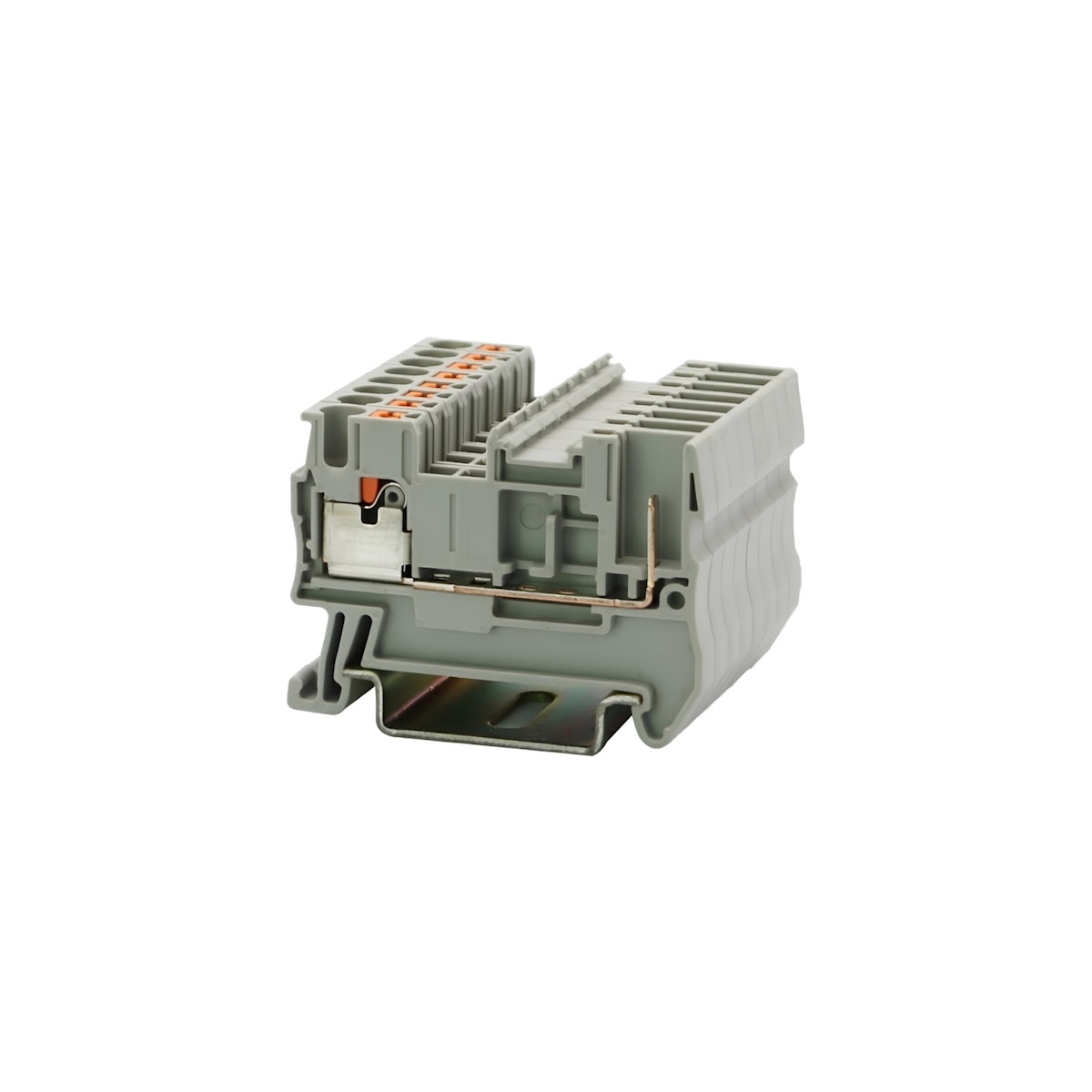 Штекерная клемма на дин-рейку, количество точек подсоединения: 2, номинальное напряжение: 500 В, номинальный ток: 24 A, 2,5 кв. мм, разъемное подключение / Push-in, серая.
