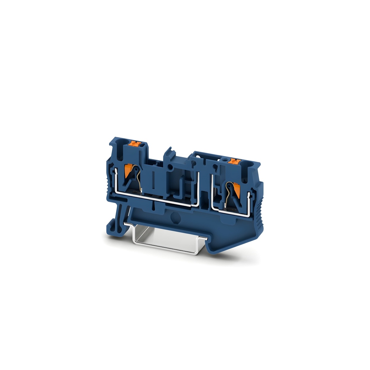 Клемма с разрывом цепи на дин-рейку, количество точек подсоединения: 2, номинальное напряжение: 400 В, номинальный ток: 20 A, 2,5 кв. мм, тип подключения: зажим Push-in, синяя.