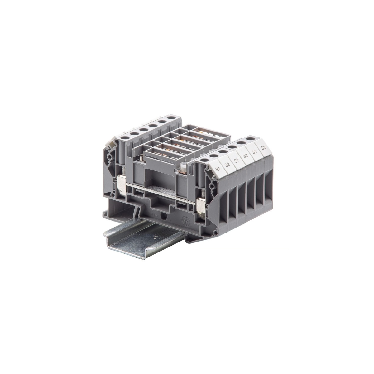 Клемма без ползункового размыкателя на дин-рейку, с измерительными втулками, номинальное напряжение: 800 В, номинальный ток: 41 A, 6 кв. мм, винтовая, серая.