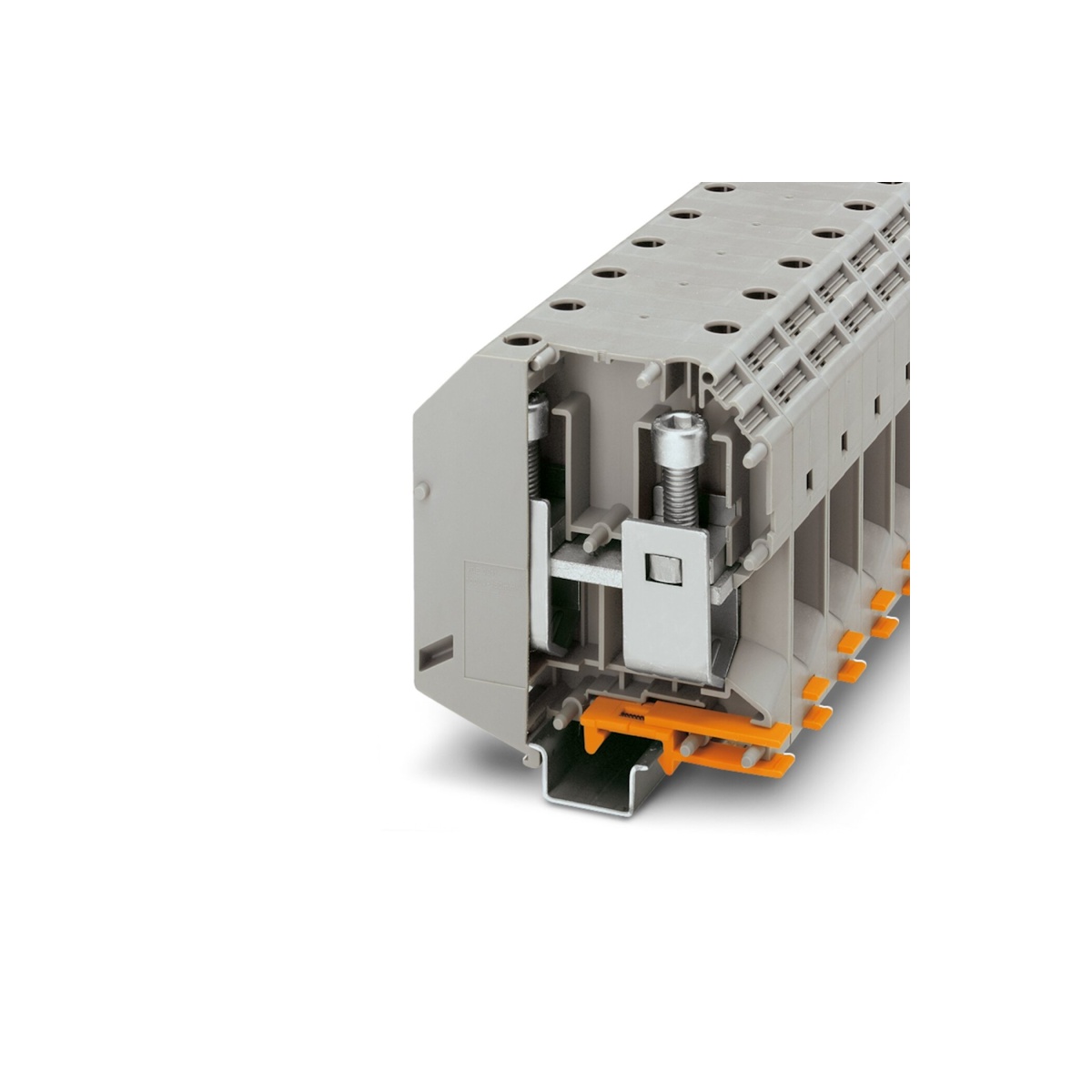 Клемма на дин-рейку для высокого тока, количество точек подсоединения: 2, номинальное напряжение: 1000 В, номинальный ток: 309 A, 150 кв. мм, винтовая, серая.