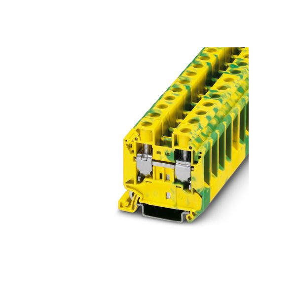 Клемма на дин-рейку, заземляющая, количество точек подсоединения: 2, 16 кв. мм, винтовая, желто-зеленая.