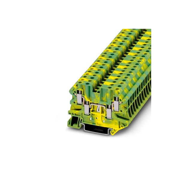 Клемма на дин-рейку, заземляющая, количество точек подсоединения: 4, 4 кв. мм, винтовая, желто-зеленая.