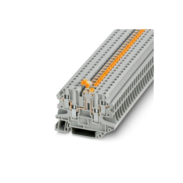 Клемма с ножевыми размыкателями на дин-рейку, количество точек подсоединения: 4, номинальное напряжение: 500 В, номинальный ток: 20 A, 4 кв. мм, винтовая, серая.