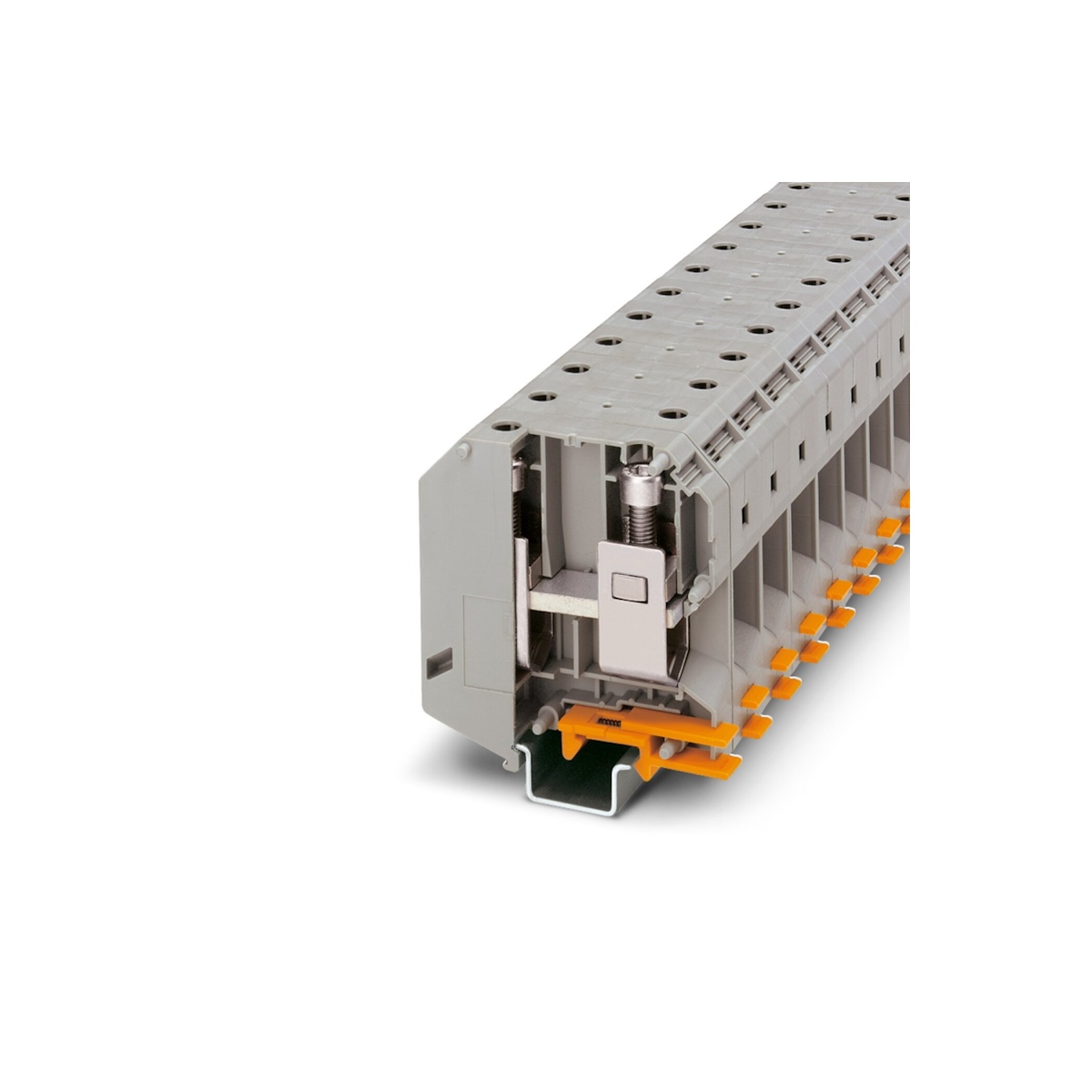 Клемма на дин-рейку для высокого тока, винты с шестигранным углублением, количество точек подсоединения: 2, номинальное напряжение: 1000 В, номинальный ток: 232 A, 95 кв. мм, винтовая, серая.