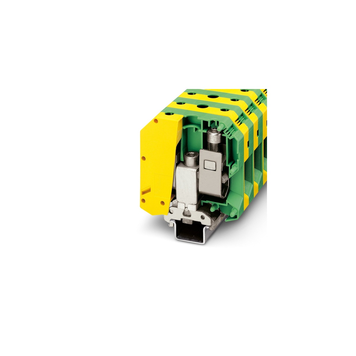 Клемма на дин-рейку, заземляющая, количество точек подсоединения: 2, 95 кв. мм, винтовая, желто-зеленая.