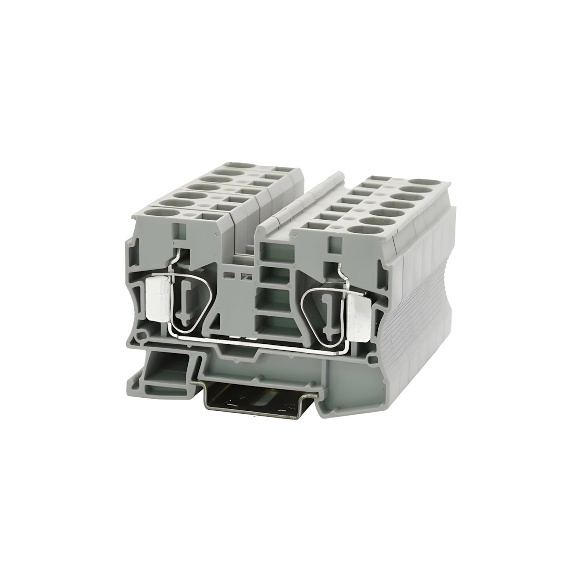 Клемма на дин-рейку, количество точек подсоединения: 2, номинальное напряжение: 800 В, номинальный ток: 65 A, 10 кв. мм, пружинная, серая.