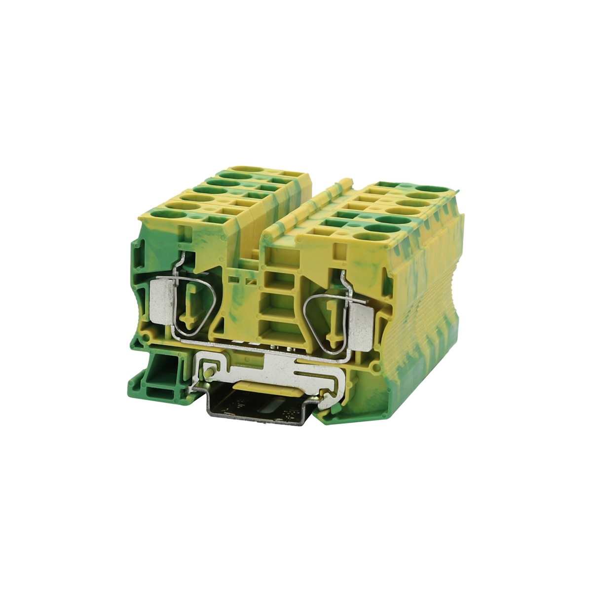 Клемма на дин-рейку, заземляющая, количество точек подсоединения: 2, 10 кв.мм, пружинная, желто-зеленая.
