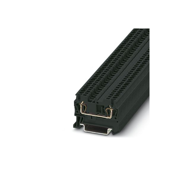 Клемма на дин-рейку, количество точек подсоединения: 2, номинальное напряжение: 500 В, номинальный ток: 17,5 A, 1,5 кв. мм, пружинная, черная.