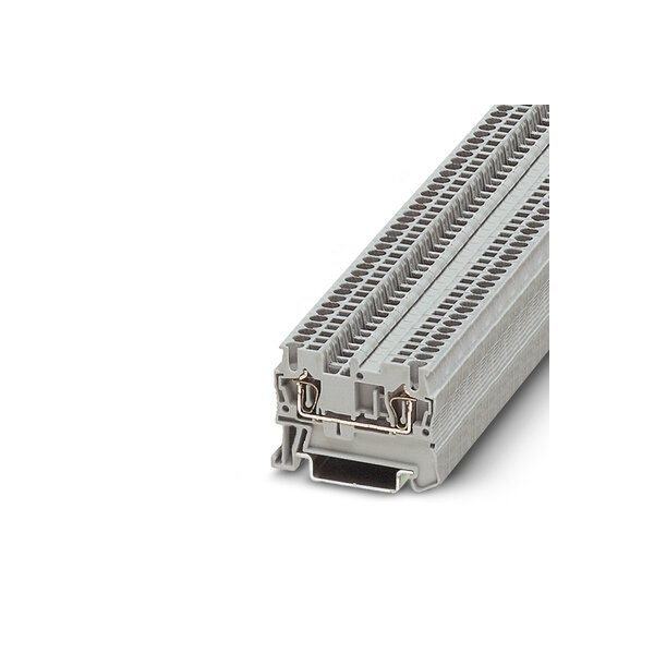 Клемма на дин-рейку, количество точек подсоединения: 2, номинальное напряжение: 500 В, номинальный ток: 17,5 A, 1,5 кв. мм, пружинная, серая.