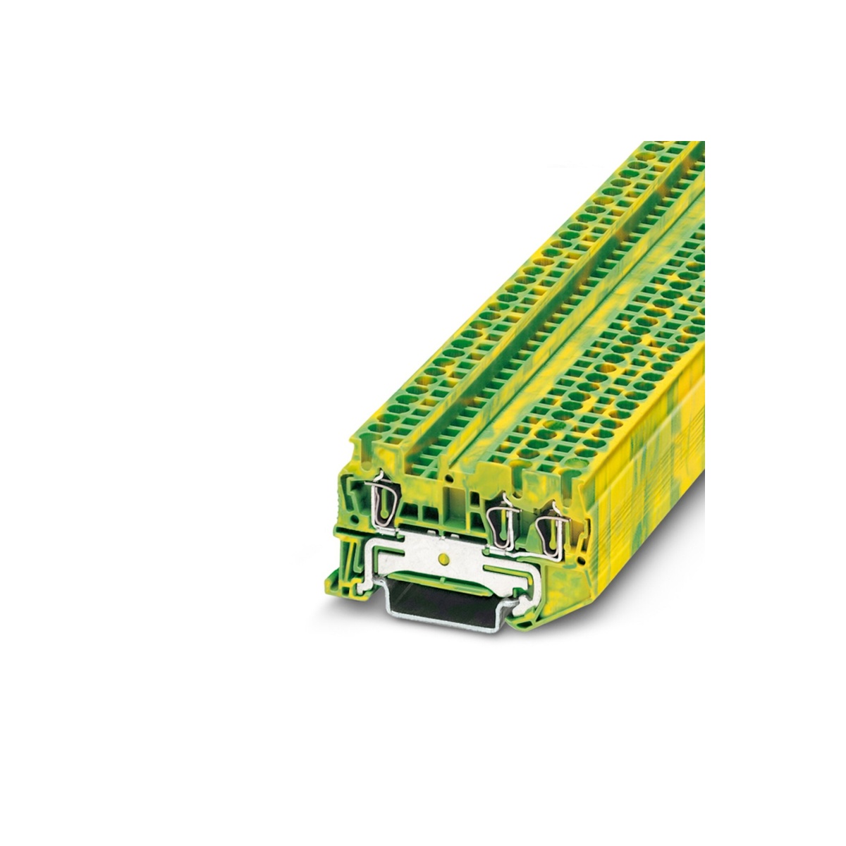 Клемма на дин-рейку, заземляющая, количество точек подсоединения: 3, 1,5 кв. мм, пружинная, желто-зеленая.