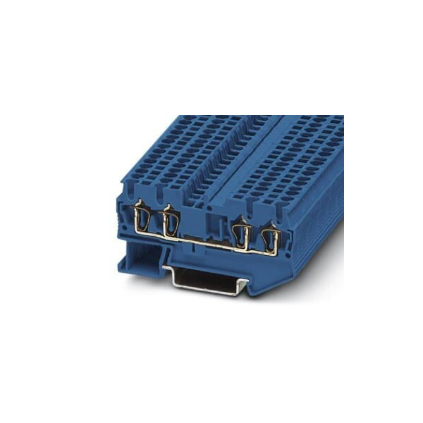 Клемма на дин-рейку, количество точек подсоединения: 4, номинальное напряжение: 500 В, номинальный ток: 17,5 A, 1,5 кв. мм, пружинная, синяя.