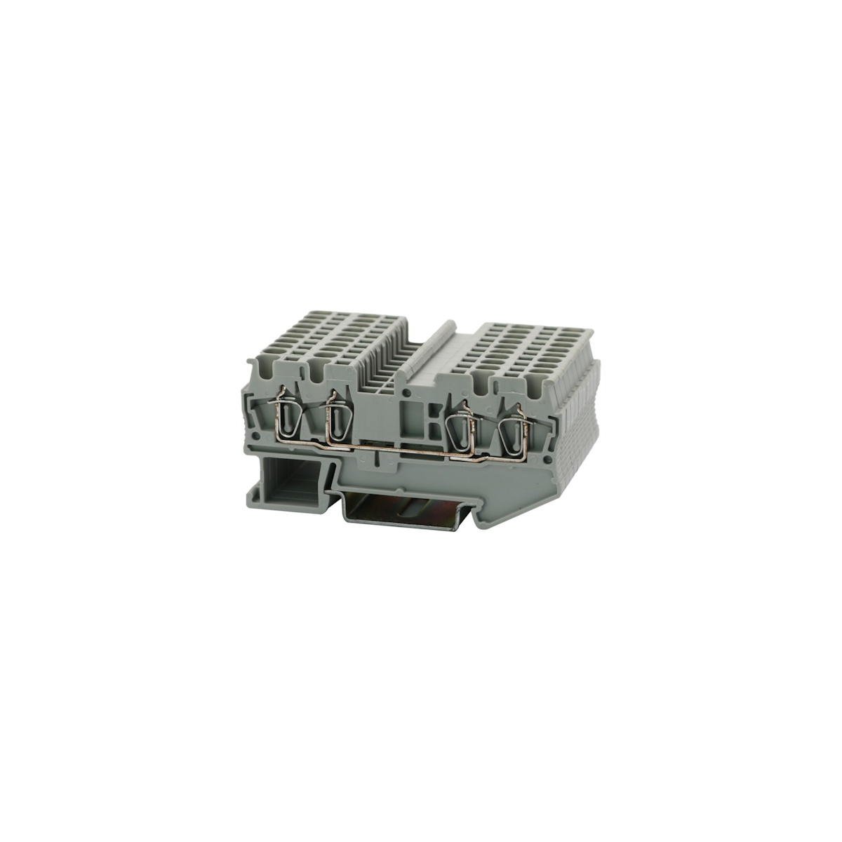 Клемма на дин-рейку, количество точек подсоединения: 4, номинальное напряжение: 500 В, номинальный ток: 17,5 A, 1,5 кв. мм, пружинная, серая.