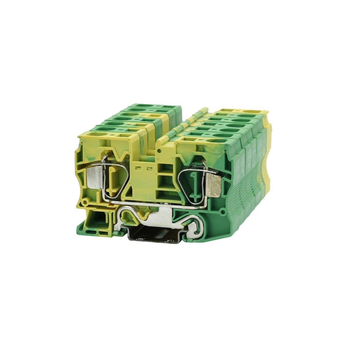 Клемма на дин-рейку, заземляющая, количество точек подсоединения: 2, 16 кв. мм, пружинная, желто-зеленая.