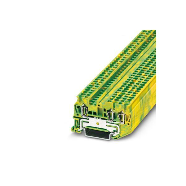 Клемма на дин-рейку, заземляющая, количество точек подсоединения: 3, 2,5 кв. мм, пружинная, желто-зеленая.