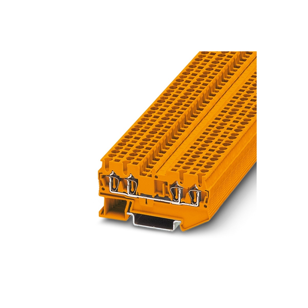 Клемма на дин-рейку, количество точек подсоединения: 4, номинальное напряжение: 800 В, номинальный ток: 24 A, 2,5 кв. мм, пружинная, оранжевая.