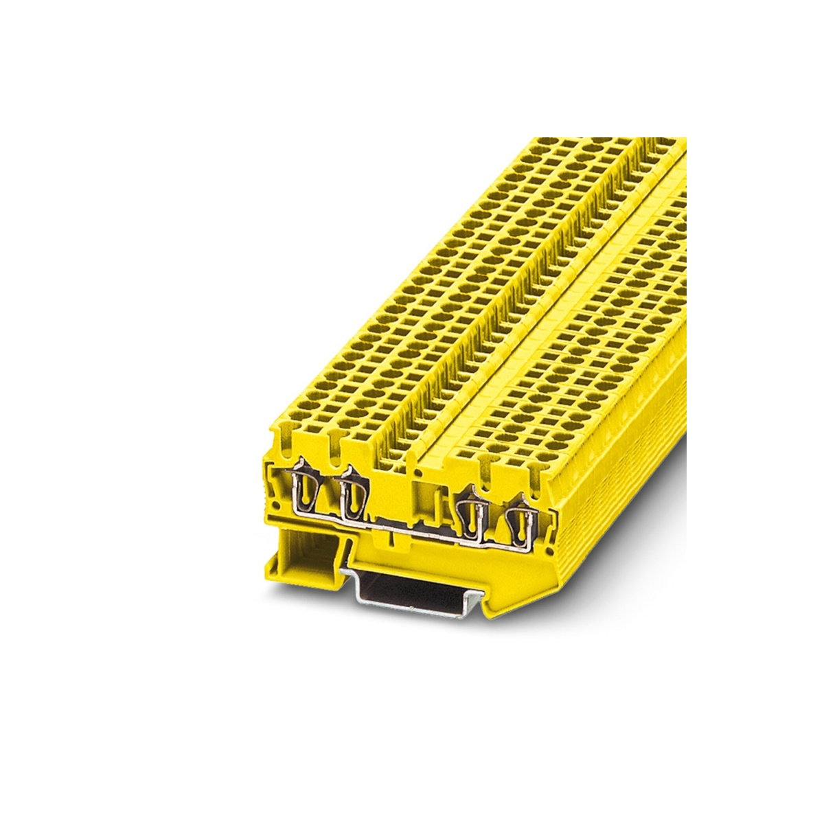 Клемма на дин-рейку, количество точек подсоединения: 4, номинальное напряжение: 800 В, номинальный ток: 24 A, 2,5 кв. мм, пружинная, желтая.