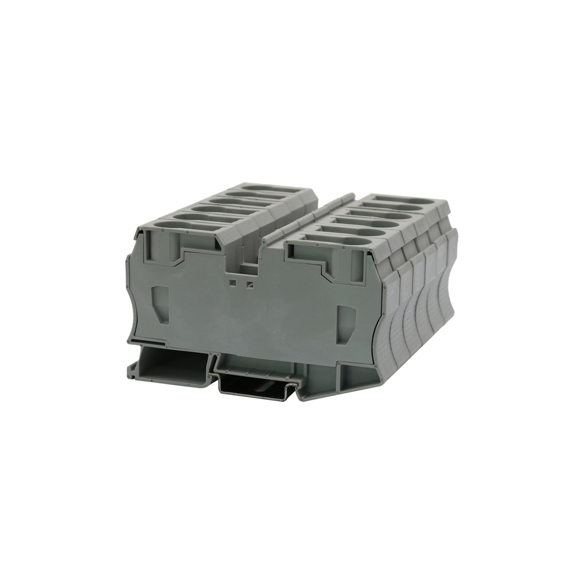 Клемма на дин-рейку, количество точек подсоединения: 2, номинальное напряжение: 800 В, номинальный ток: 125 A, 35 кв. мм, пружинная, серая.