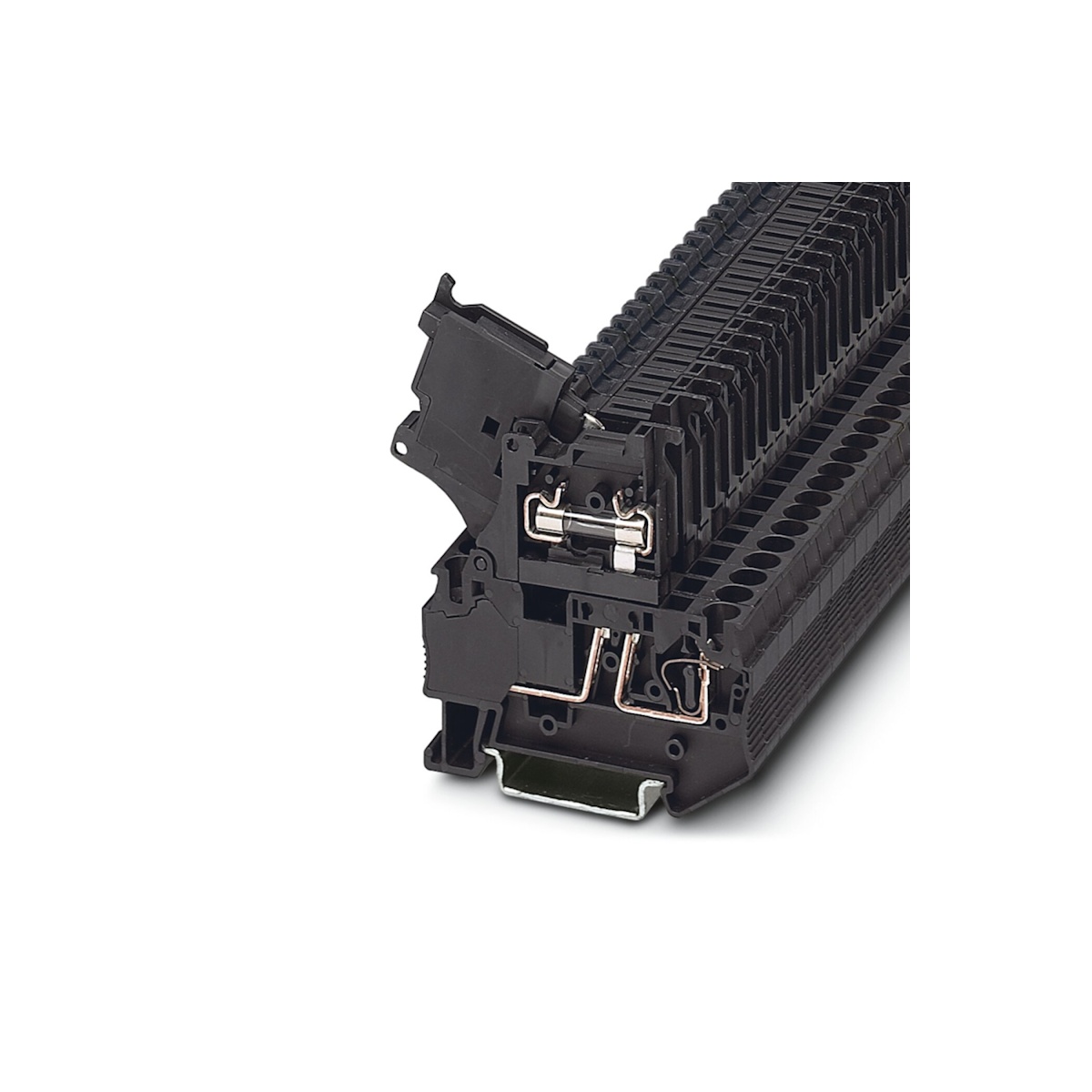 Клемма на дин-рейку для установки предохранителей, тип предохранителей: G / 5 x 20, номинальное напряжение: 250 В, номинальный ток: 17,5 A, 4 кв. мм, пружинная, черная.