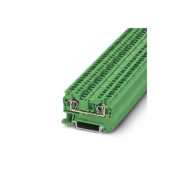 Клемма на дин-рейку, количество точек подсоединения: 2, номинальное напряжение: 800 В, номинальный ток: 32 A, 4 кв. мм, пружинная, зеленая.