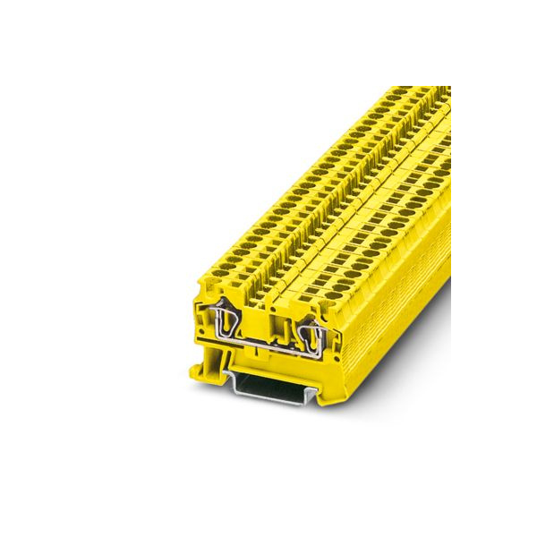 Клемма на дин-рейку, количество точек подсоединения: 2, номинальное напряжение: 800 В, номинальный ток: 32 A, 4 кв. мм, пружинная, желтая.