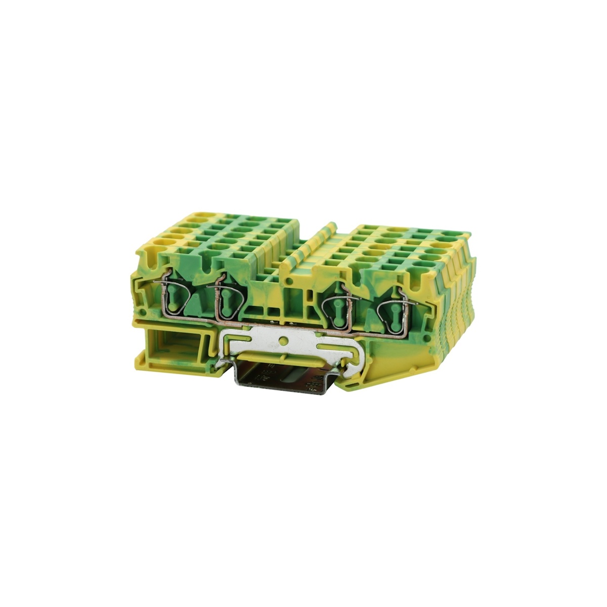 Клемма на дин-рейку, заземляющая, количество точек подсоединения: 4, 4 кв.мм, пружинная, желто-зеленая.