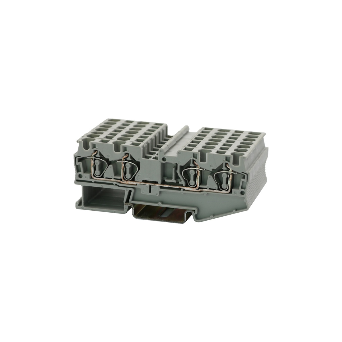 Клемма на дин-рейку, количество точек подсоединения: 4, номинальное напряжение: 800 В, номинальный ток: 40 A, 4 кв.мм, пружинная, серая.