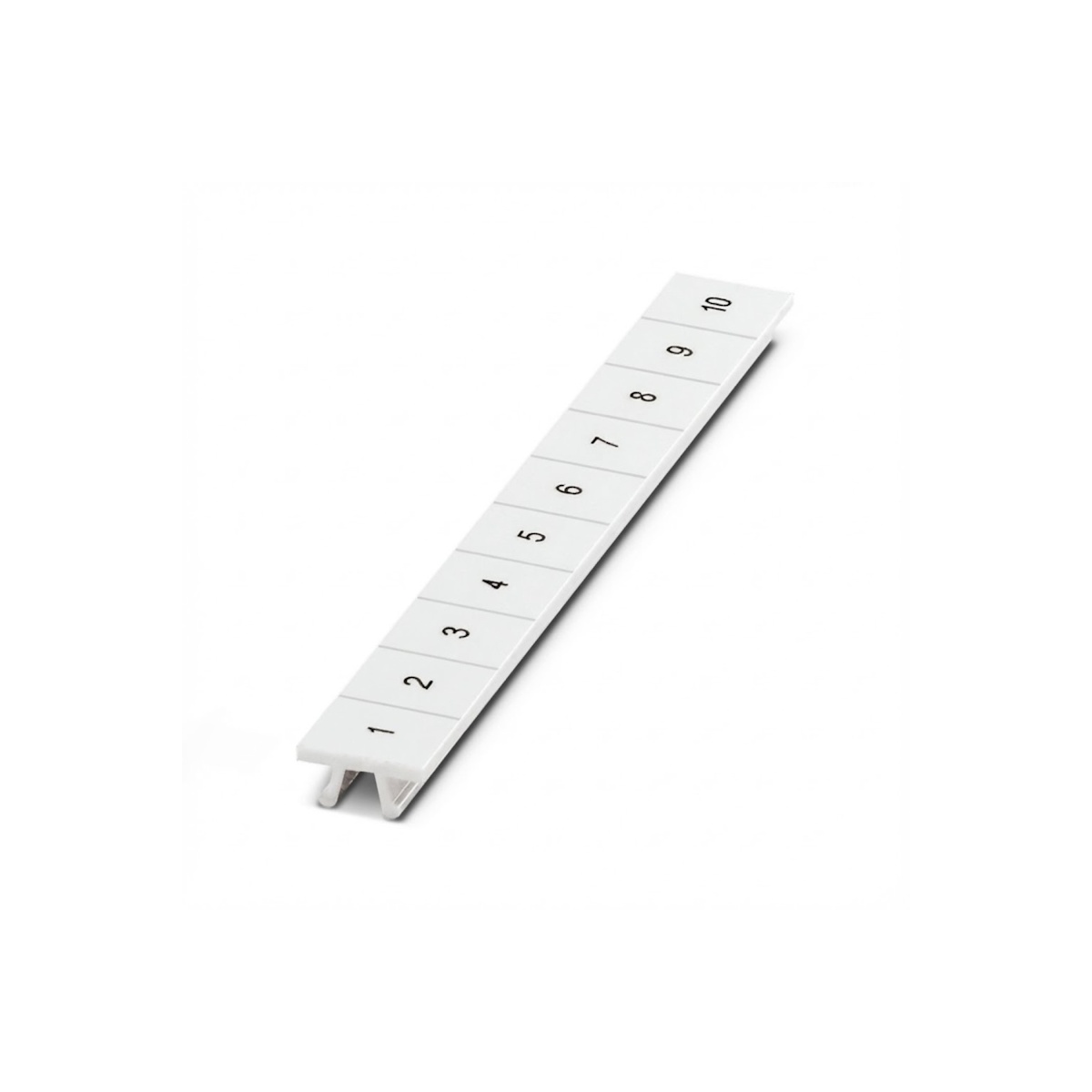 Полоса маркировочная, цвет белый, надписи горизонтально: 1 .. 10, тип монтажа: фиксация, для клемм шириной: 8,2 мм, высота текстового поля: 10,5 мм, ширина текстового поля: 8,15 мм