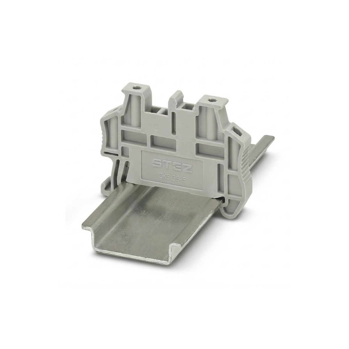 Стопор безвинтовой, для фиксации клеммной сборки на несущей рейки NS 35/7,5 или NS 35/15; серый.
